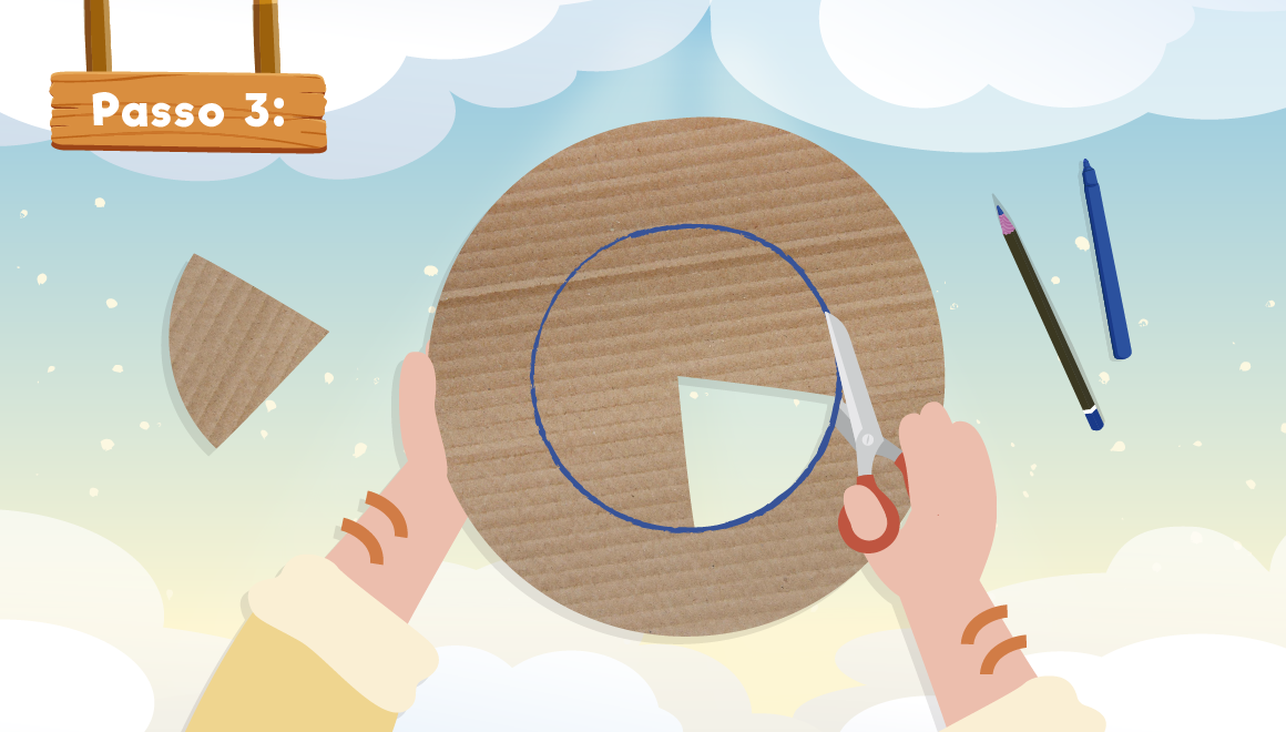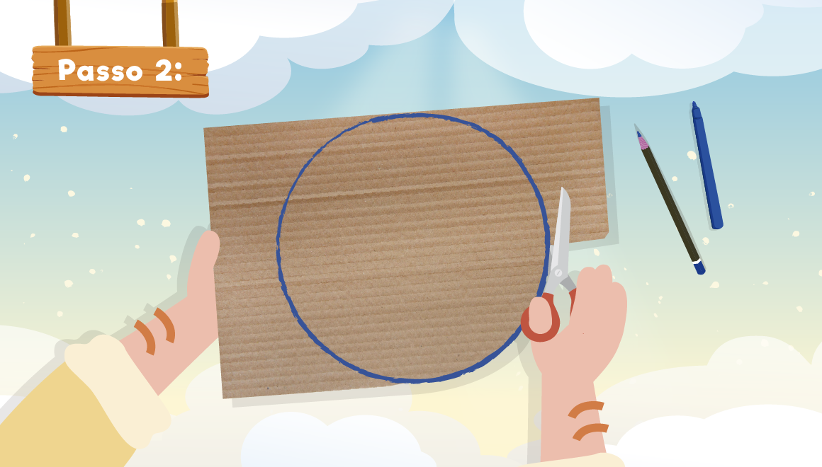 Com ajuda dos teus familiares, recorta com a tesoura um grande círculo no cartão.