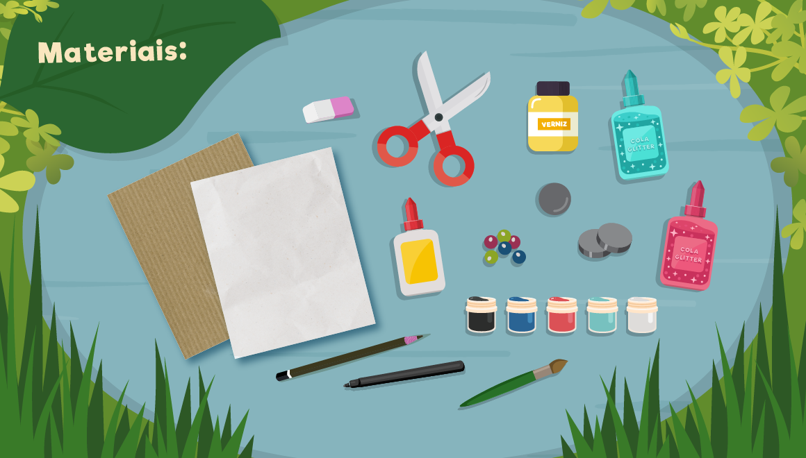 - Papel, lápis, borracha e tesoura