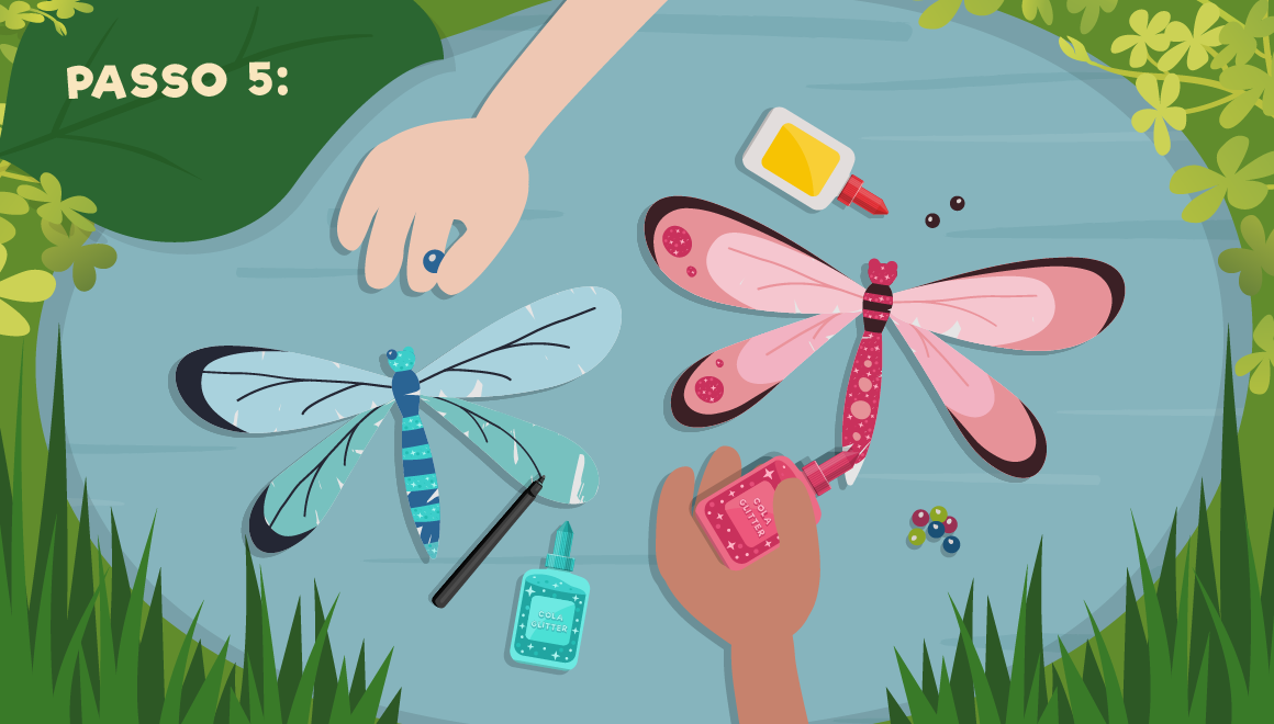 Pinta o corpo da libelinha.