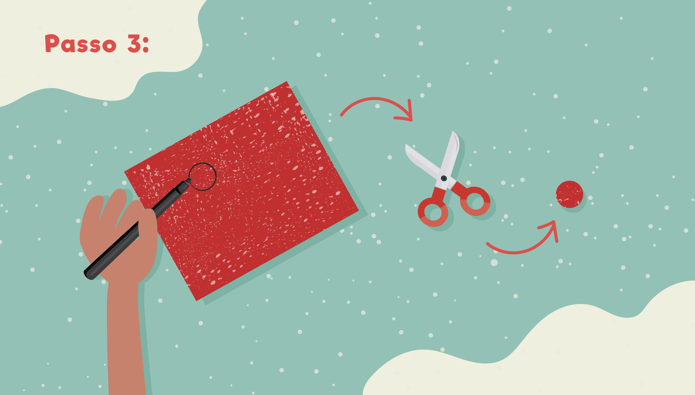 Na cartolina vermelha, recorta um círculo um pouco maior para o nariz da rena. Tem de ser mais rechonchudo! Desta maneira, o nariz vermelho da rena ganha um verdadeiro destaque.