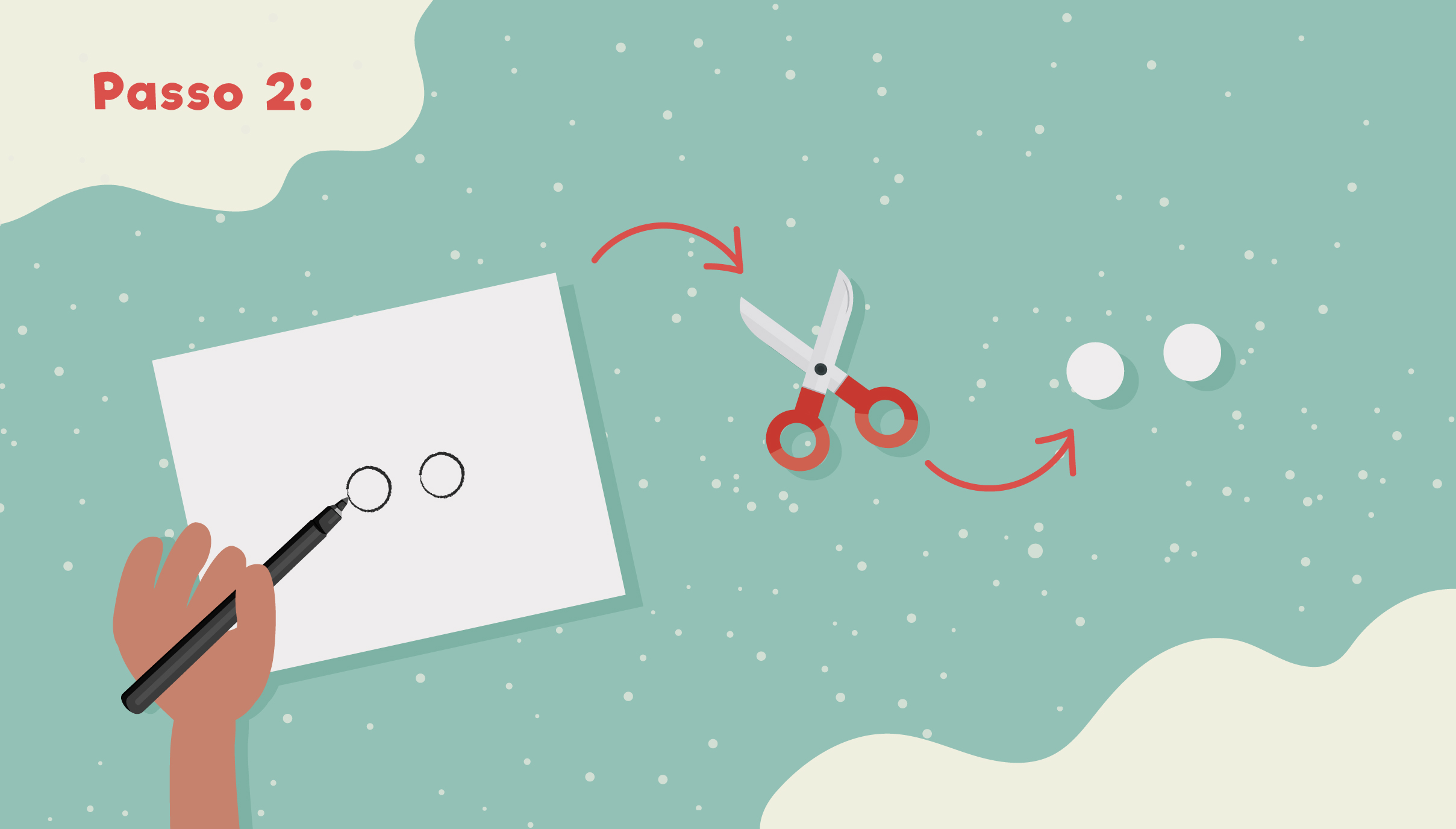 Desenha dois círculos na folha de papel branca e recorta-os. Já tens os olhos da tua rena!
