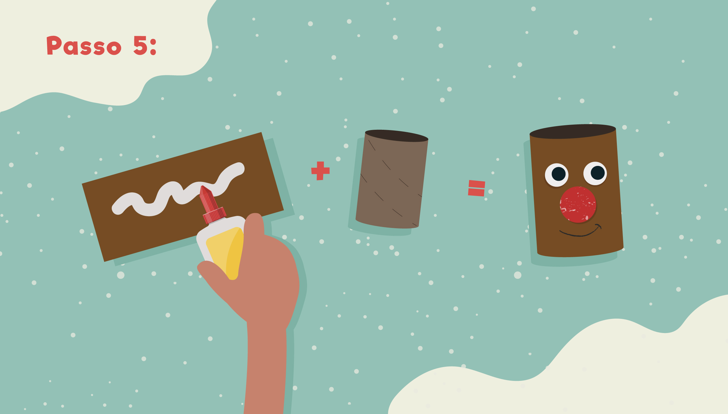 Espalha cola líquida nas “traseiras” do retângulo castanho (na parte sem os olhos e o nariz colados) e forra o rolo de papel higiénico. Deixa secar por alguns minutos.